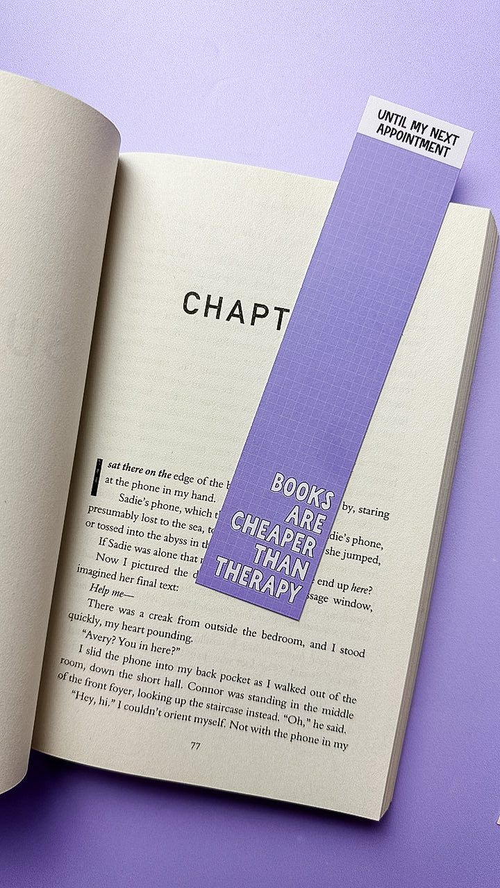 Because a good plot twist beats an emotional breakdown any day. Let this bookmark remind you that your favorite escape only costs a few bucks—and no awkward soul-searching required. Reading: the ultimate self-care hack.