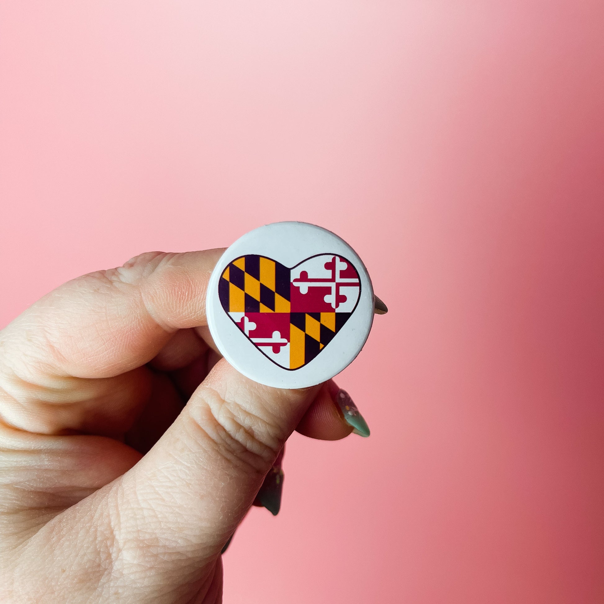 This beautiful and unique button pin is perfect for any Maryland resident who loves their state! Featuring the iconic Maryland Flag and a heart, this pin is sure to bring a smile to anyone who wears it. The flag is full of vibrant colors and the heart is a bright and cheerful reminder of the love that Marylanders have for their home state. Whether you’re giving it as a gift or wearing it yourself, this pin is a great way to show your Maryland pride.
