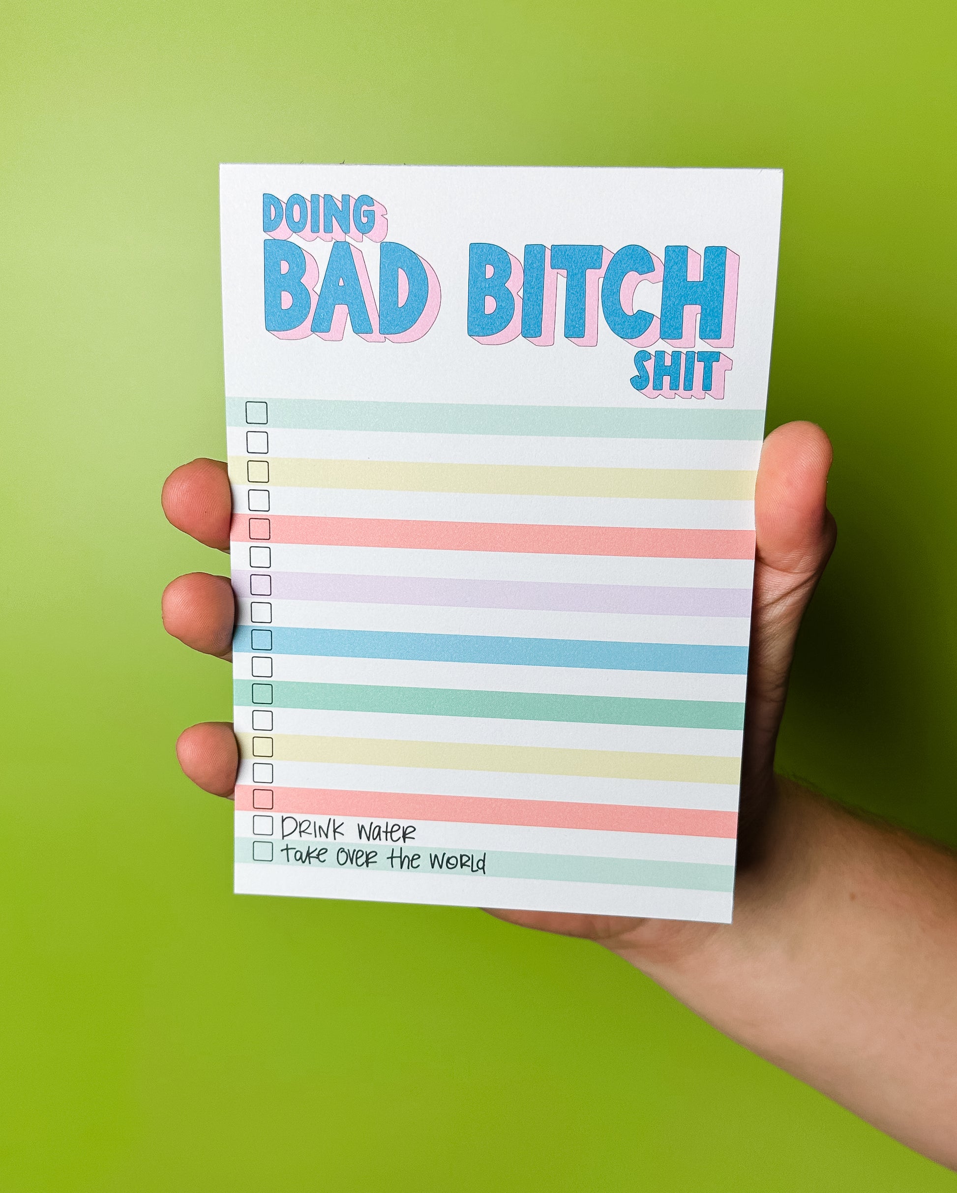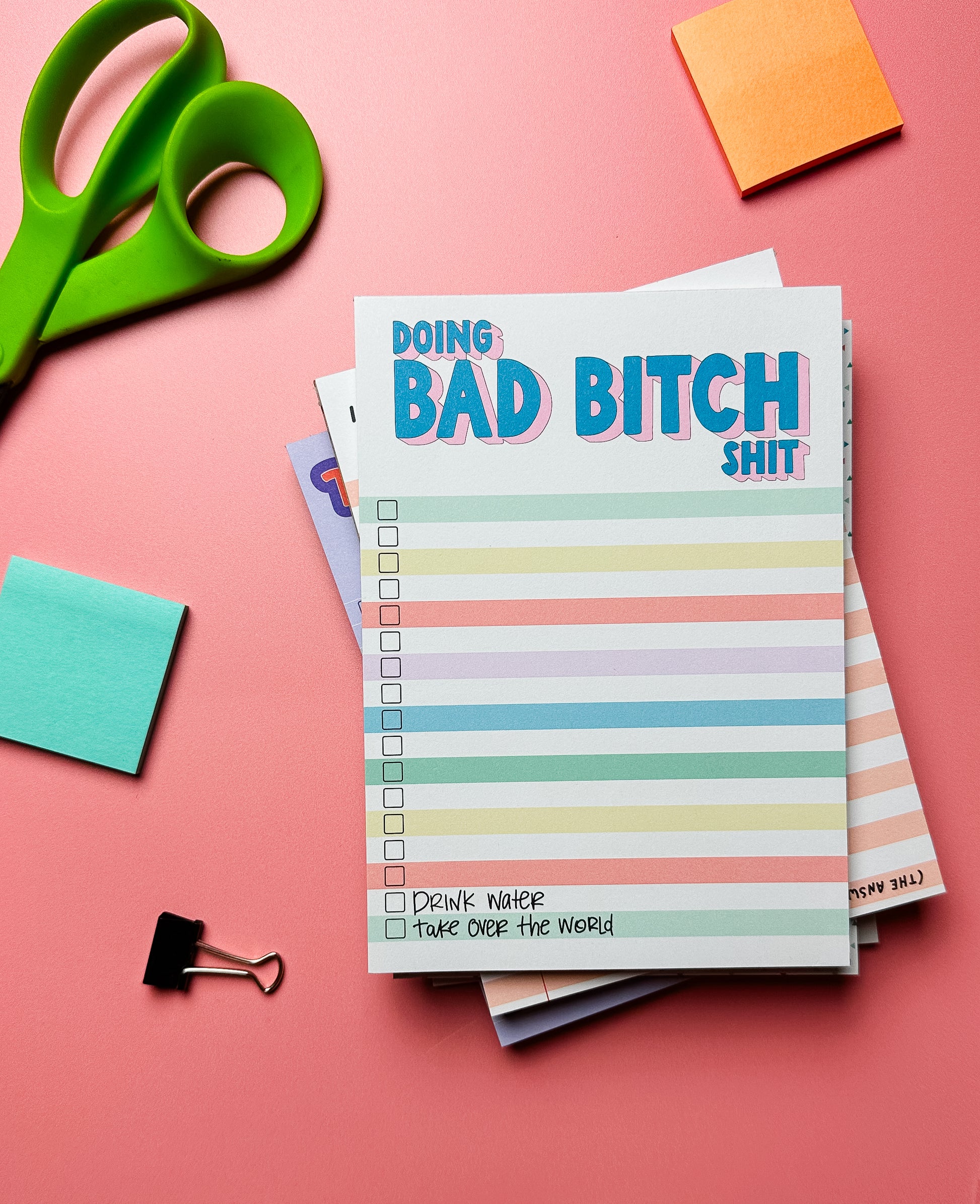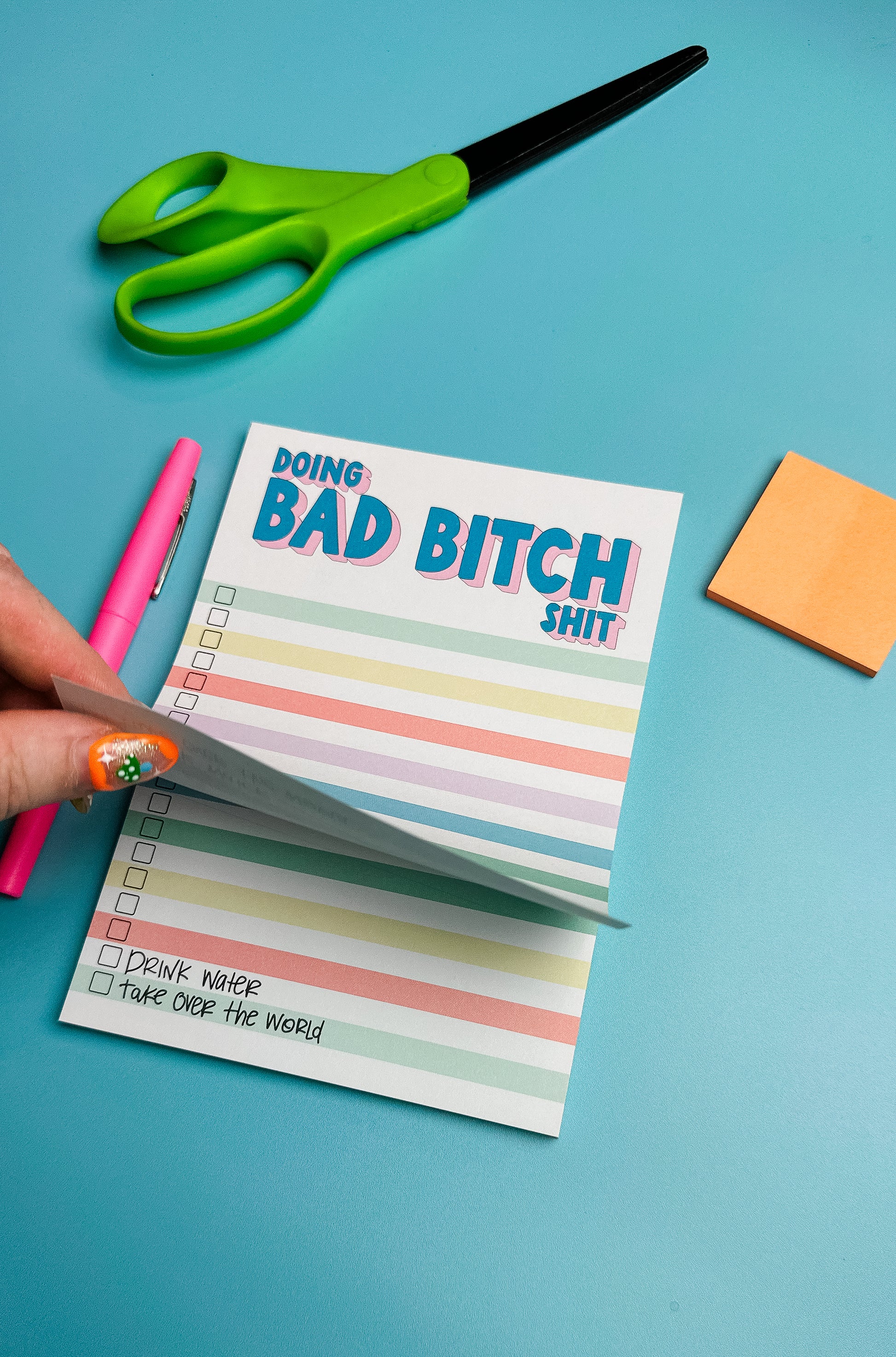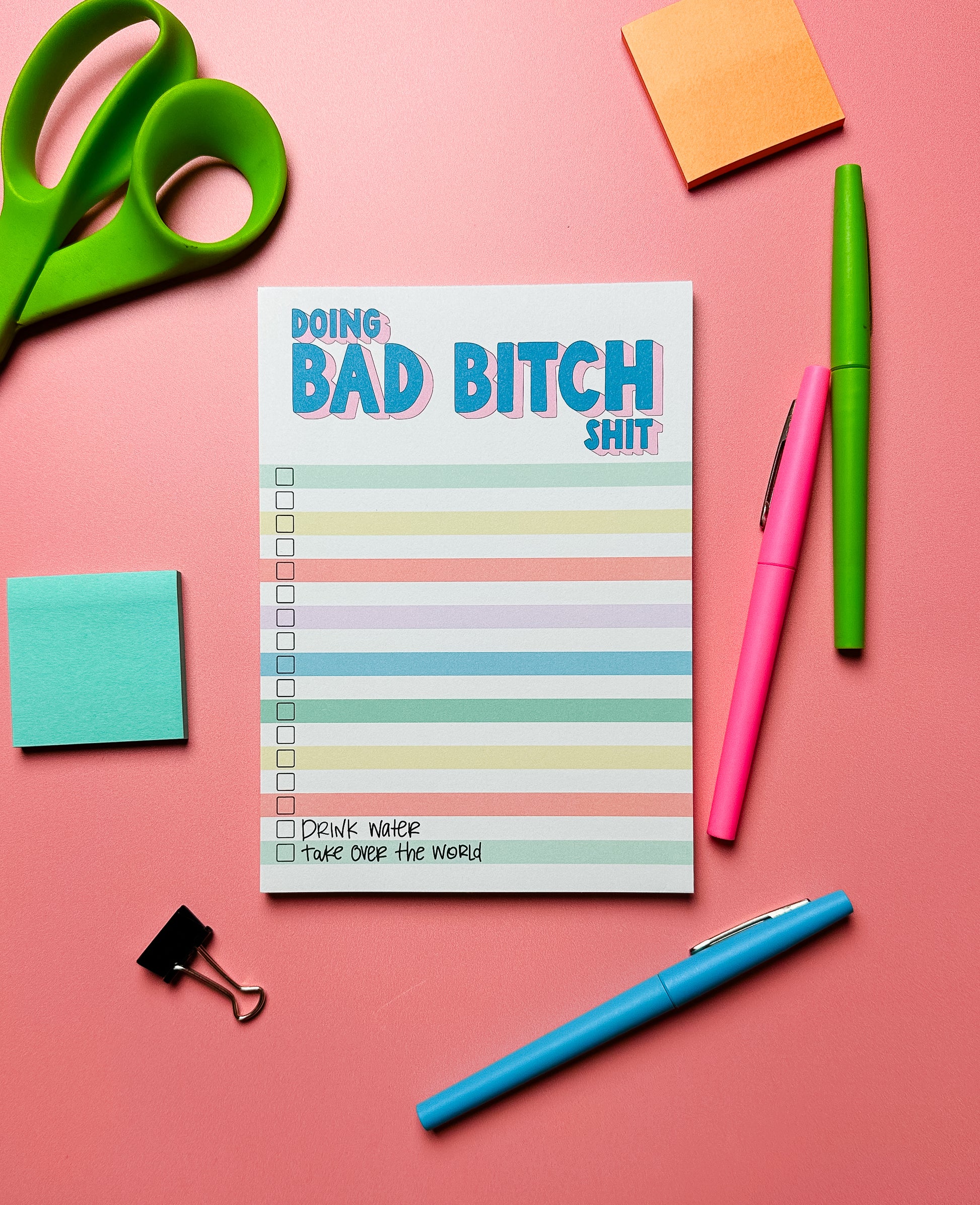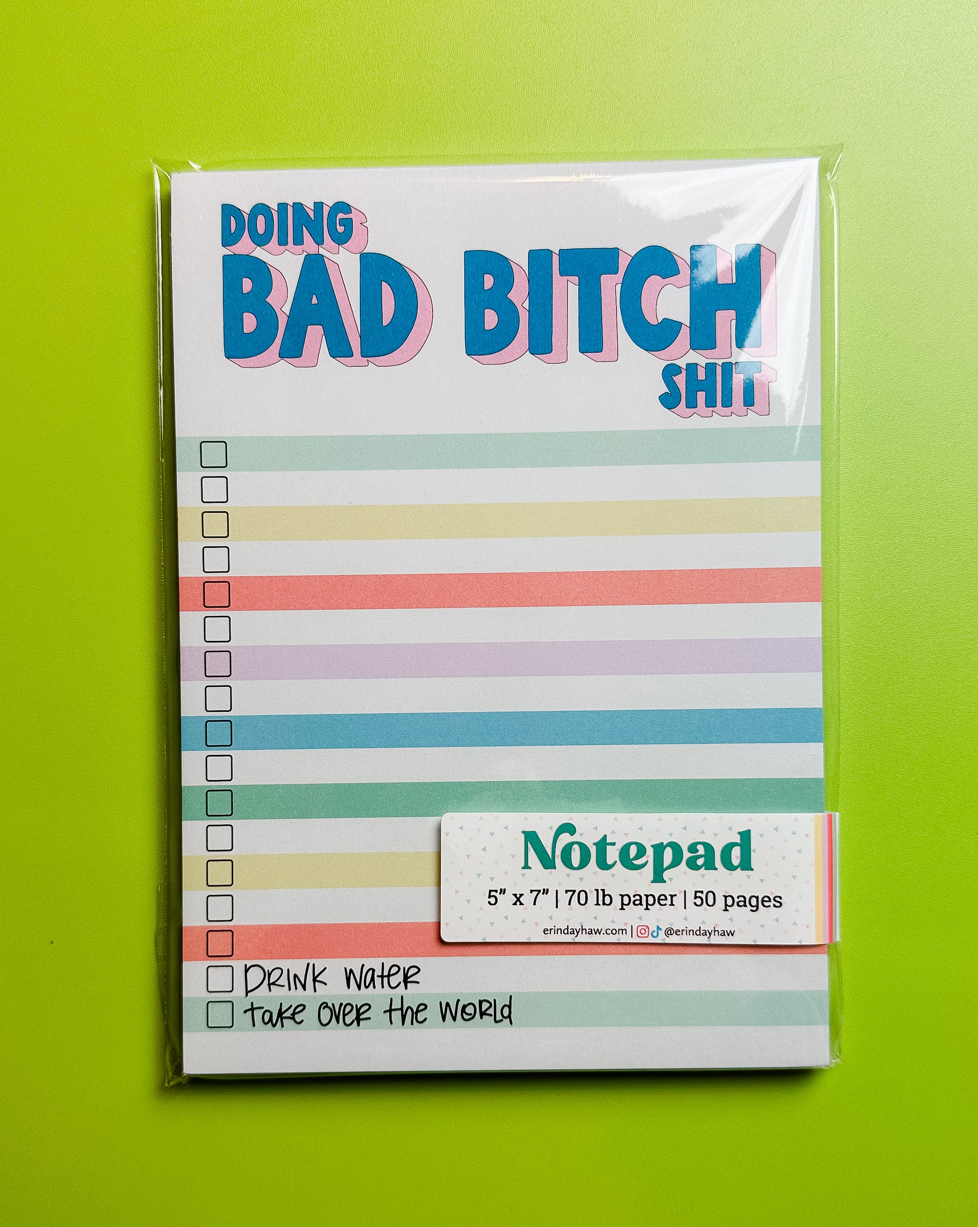 Take control of your life with this Doing Bad Bitch Shit Notepad! Write your dreams, goals, and plans in colorful detail on its 5x7, 50 pages, 70 lb paper. You can do it – you are a bad bitch!