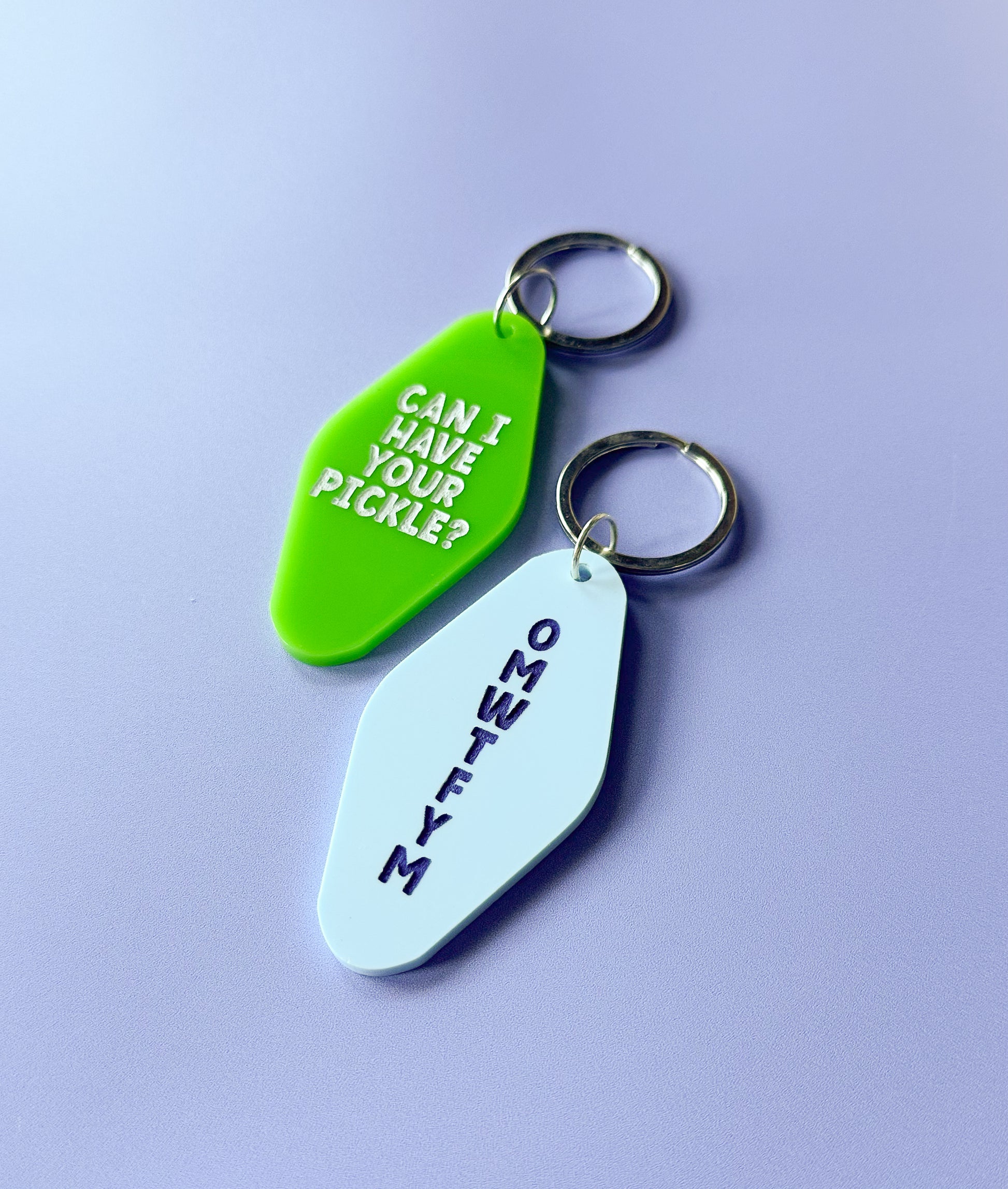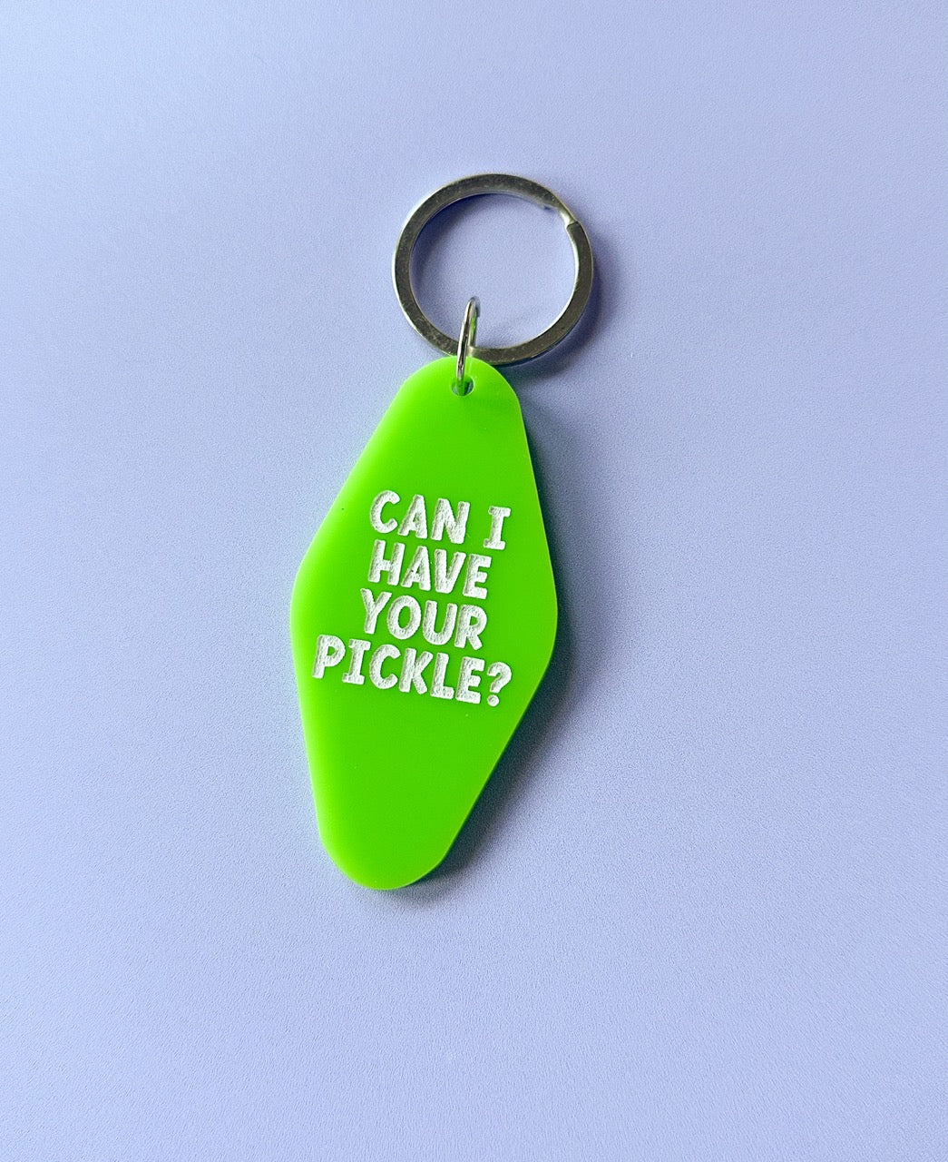 Add some cheeky humor to your everyday essentials with the "Can I Have Your Pickle?" keychain. Perfect for pickle lovers or anyone who enjoys a little sassy fun, this keychain is bound to get some attention. Whether you're gifting it to a friend or treating yourself, it’s a playful way to spice up your keys. Crafted from durable materials, it's ready to bring some personality wherever you go.