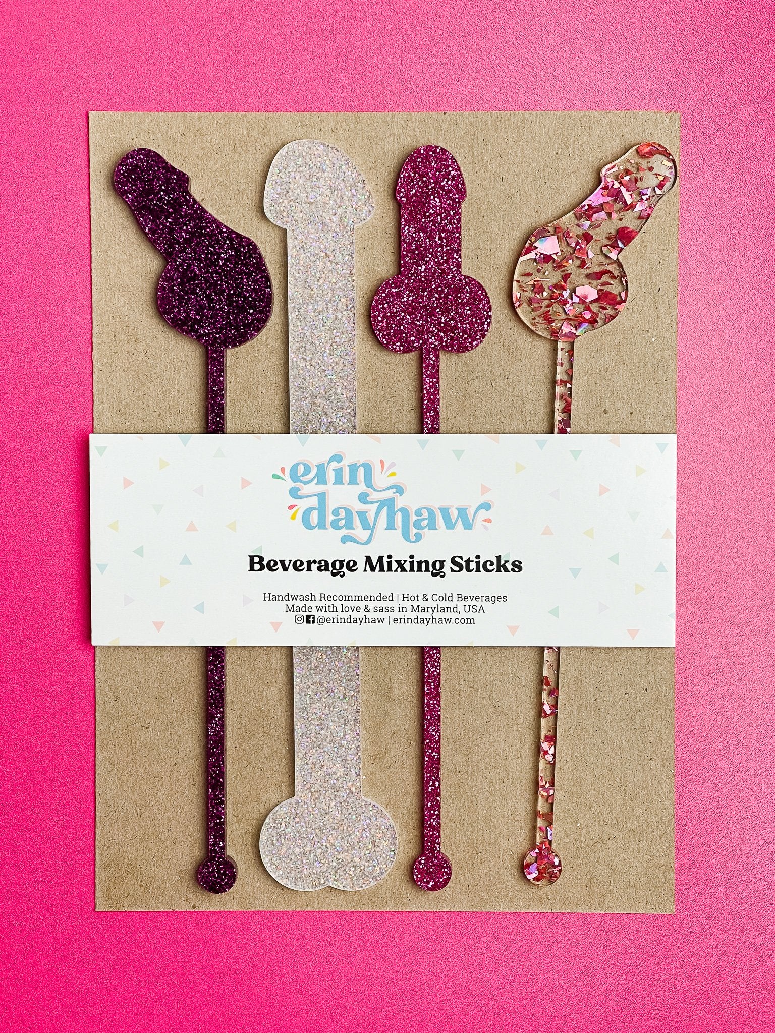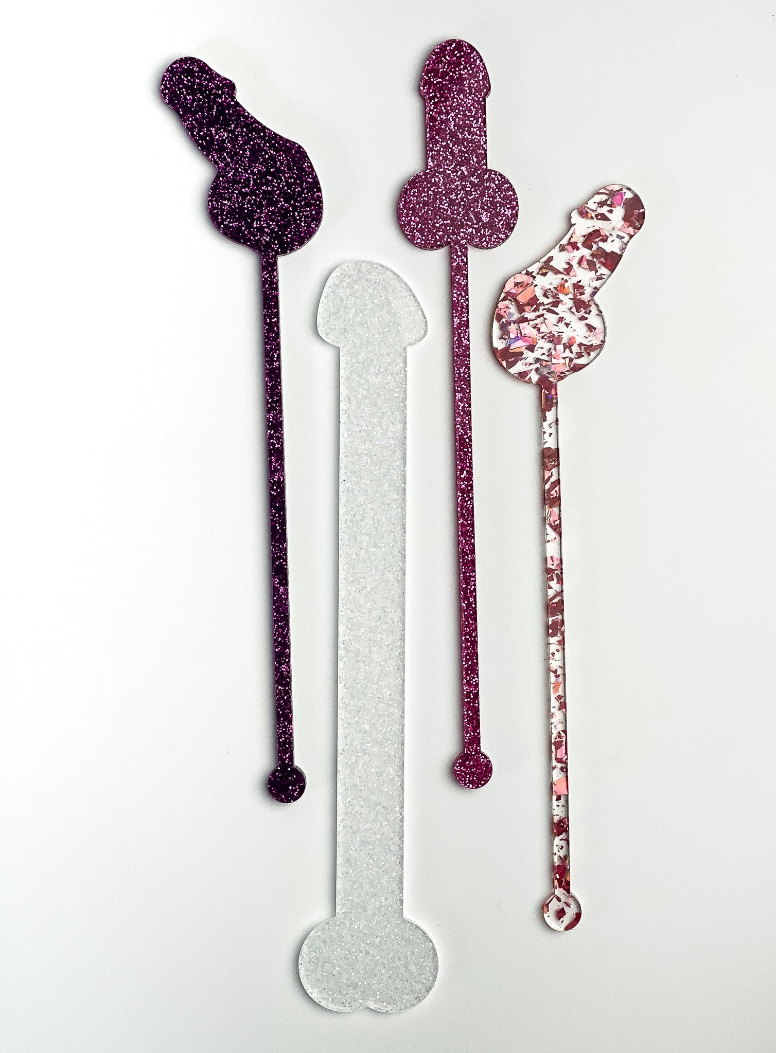 Stirrers are 7 inch long. As packaged: 7.5 in L by 5.5 in W. 1/8 inch acrylic.