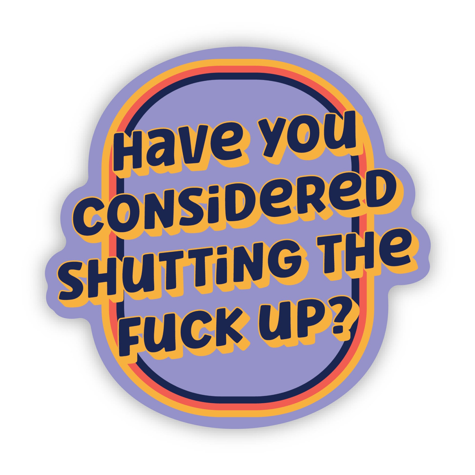 Keywords: funny sarcasm sticker, shut up humor decal, sassy attitude sticker, bold personality sticker, snarky conversation stopper.
