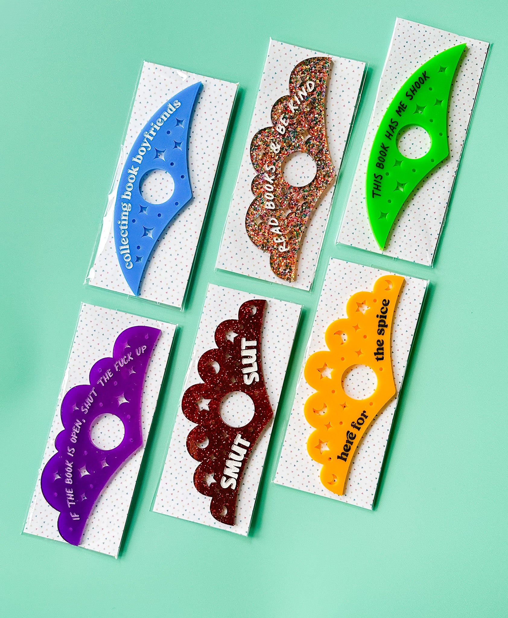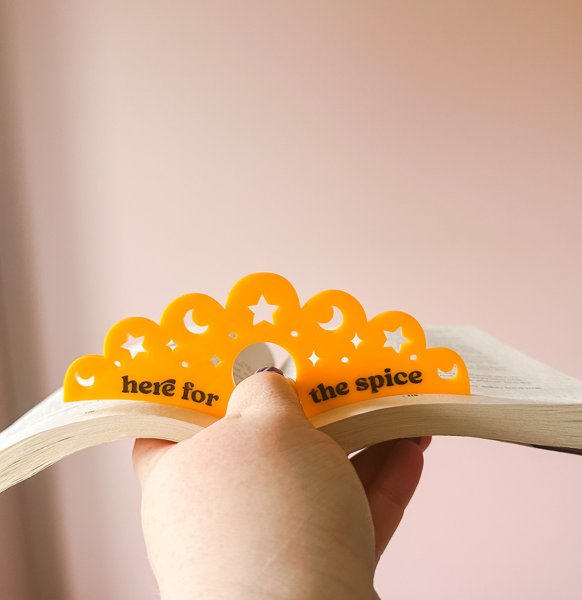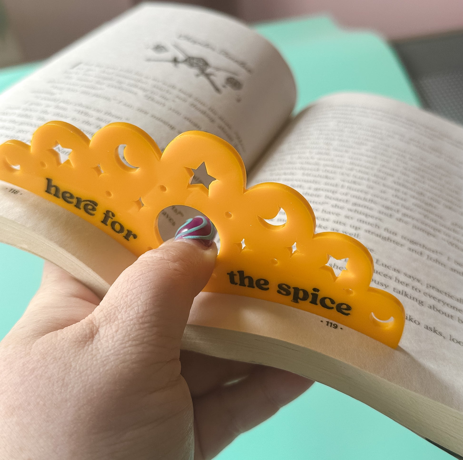 Spice up your reading routine with this golden yellow acrylic page spreader, designed for those who live for the drama, passion, and heat in their books. Perfect for holding your pages open during the juiciest scenes, this accessory combines functionality with a dash of sass. Whether you’re diving into a fiery romance or an intense thriller, this page spreader is here to make your reading experience as effortless as it is spicy.