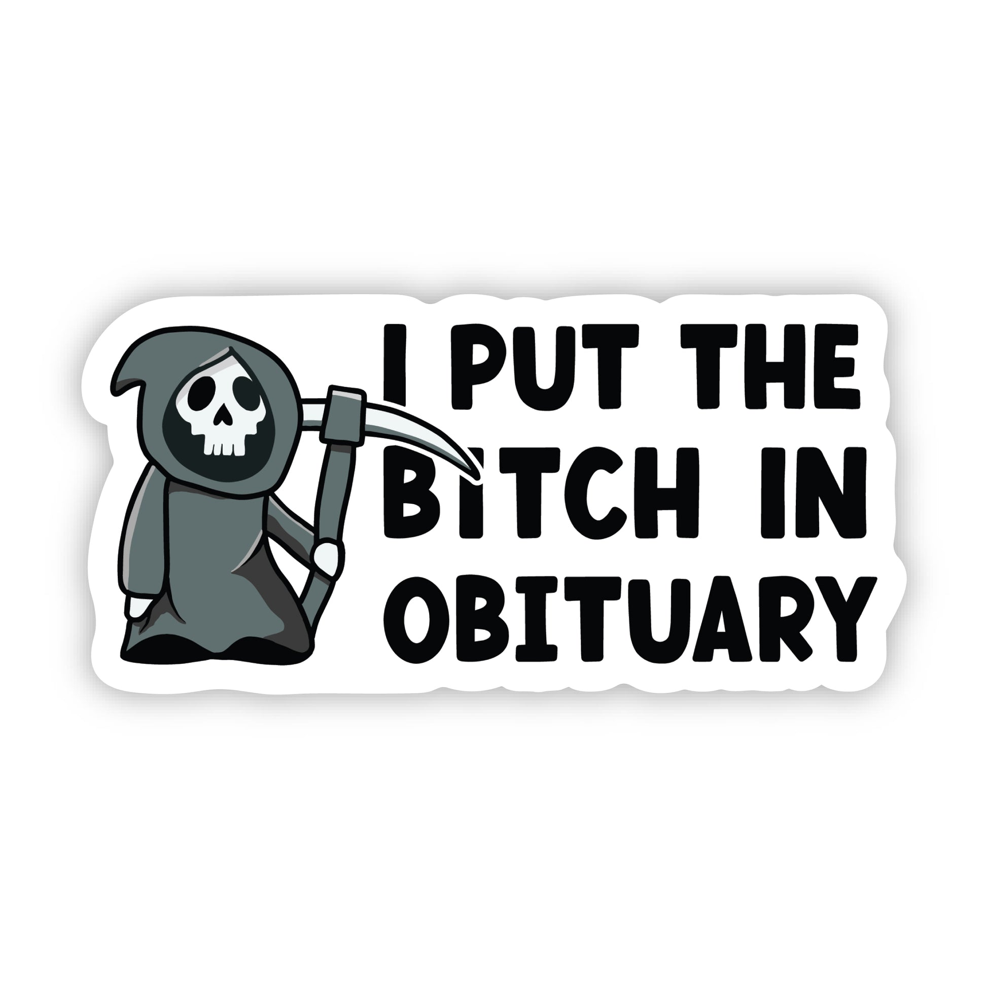 Keywords: funny dark humor sticker, snarky obituary decal, bold attitude sticker, savage personality sticker, sassy goth humor.