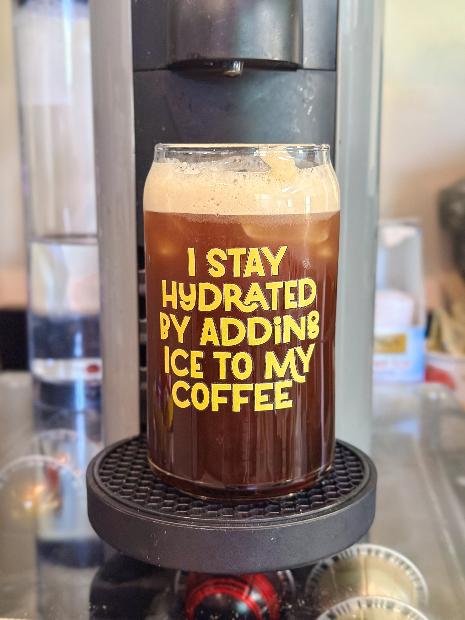 Hydration is key – and for you, that means "I Stay Hydrated by Adding Ice to My Coffee." This 16oz beer can glass is perfect for iced coffee lovers who need that extra chill in every sip. Featuring a double-sided decal, this glass is a fun way to show off your coffee obsession while keeping things cool. Whether you're working from home or out with friends, this glass is sure to be a conversation starter. Handwash for longevity and a clear, crisp design every time.