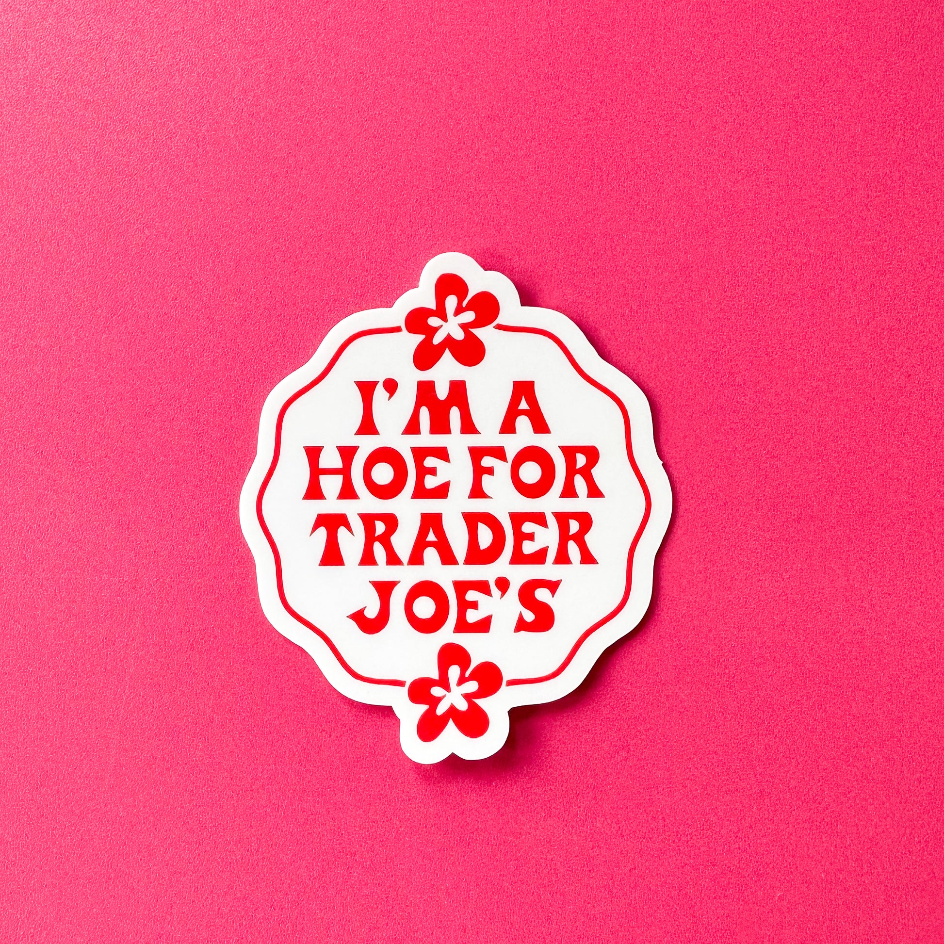 So, if you find yourself constantly tempted by Trader Joe's delectable treats and unique selections, this sticker is a must-have. Let the world know that you're proud to be a "Hoe for Trader Joe's" and embrace your love for all things TJ's. Order now and join the ranks of loyal fans who just can't get enough of this beloved grocery store!