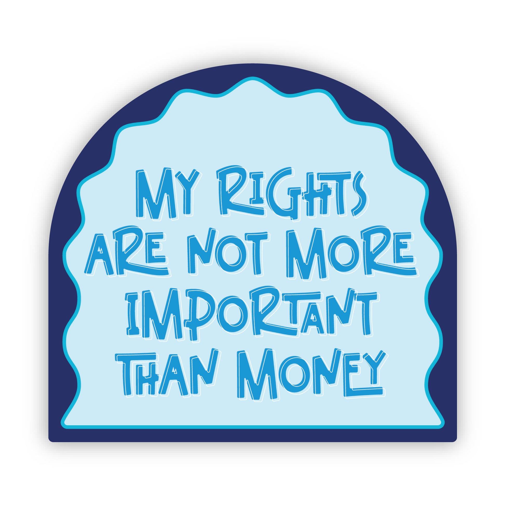 Keywords: political commentary sticker, sarcastic rights vs. money, sassy government critique, bold election reaction sticker, social justice humor.