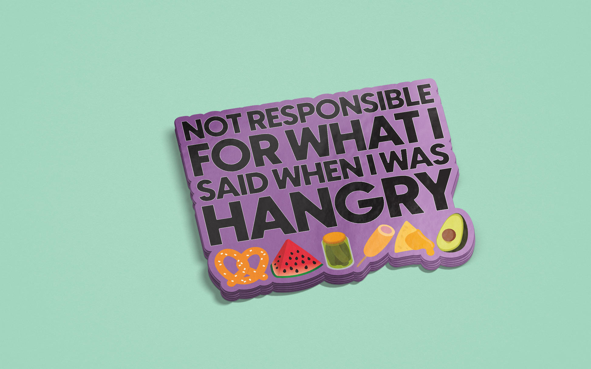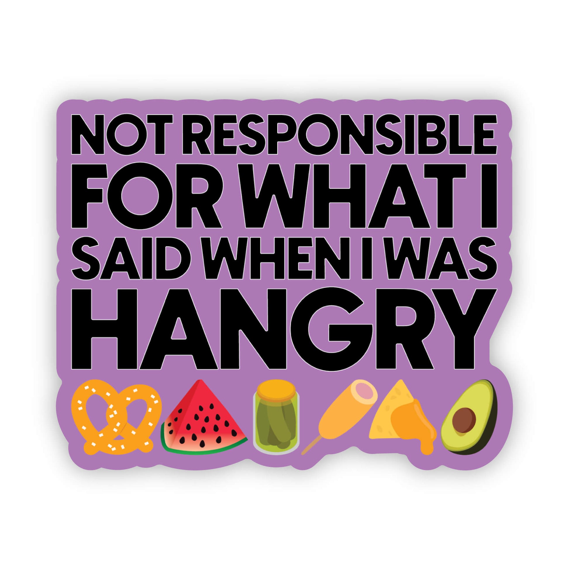 The illustrations of yummy food add a playful and fun touch to the message, making it the perfect combination of humor and relatability. So the next time you feel a little on edge, stick this baby on your favorite item and let the world know that you're not responsible for what you say when you're hangry. With our "Not Responsible for What I Said When I Was Hangry" sticker, you'll be sure to turn heads and get some laughs, while also owning up to your hangry moments in the most delicious way possible.