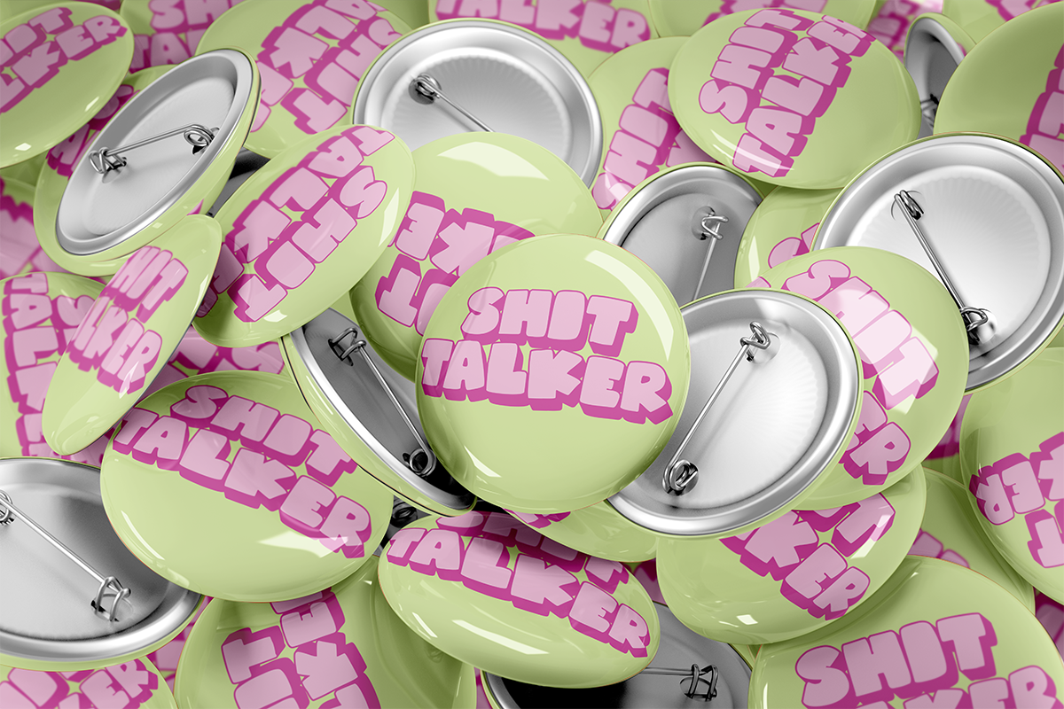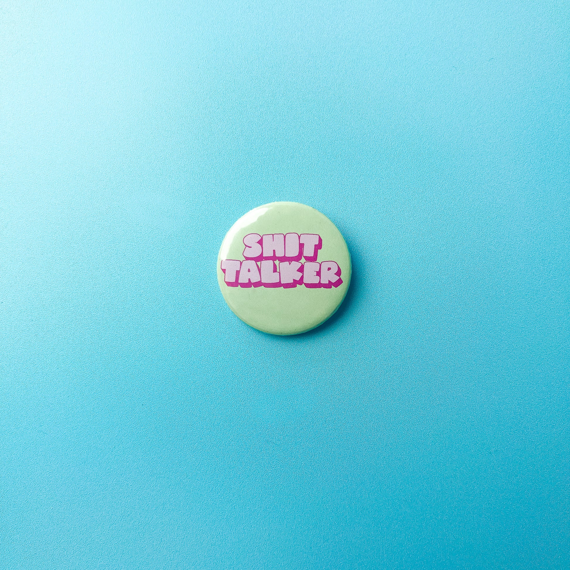 Whether you're a seasoned pro at talking shit or just love to have a bit of fun, this button pin is sure to bring a smile to your face. The bright and bold design is eye-catching and sure to grab attention.