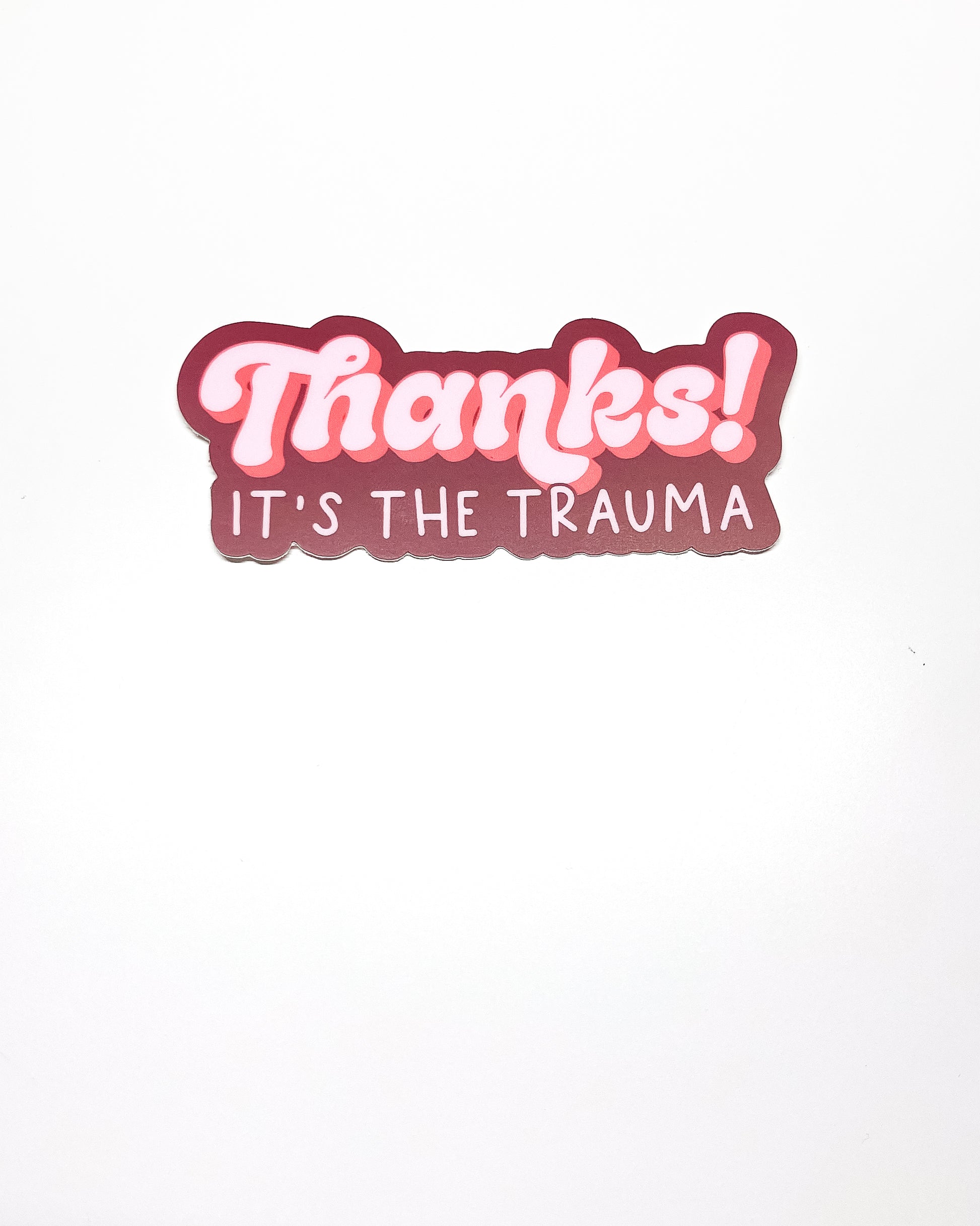 So if you're looking for a way to embrace your experiences and add some humor to your life, this "Thanks! It's the trauma!" sticker is the perfect choice. Get yours today and let the world know that you're not afraid to own your story!