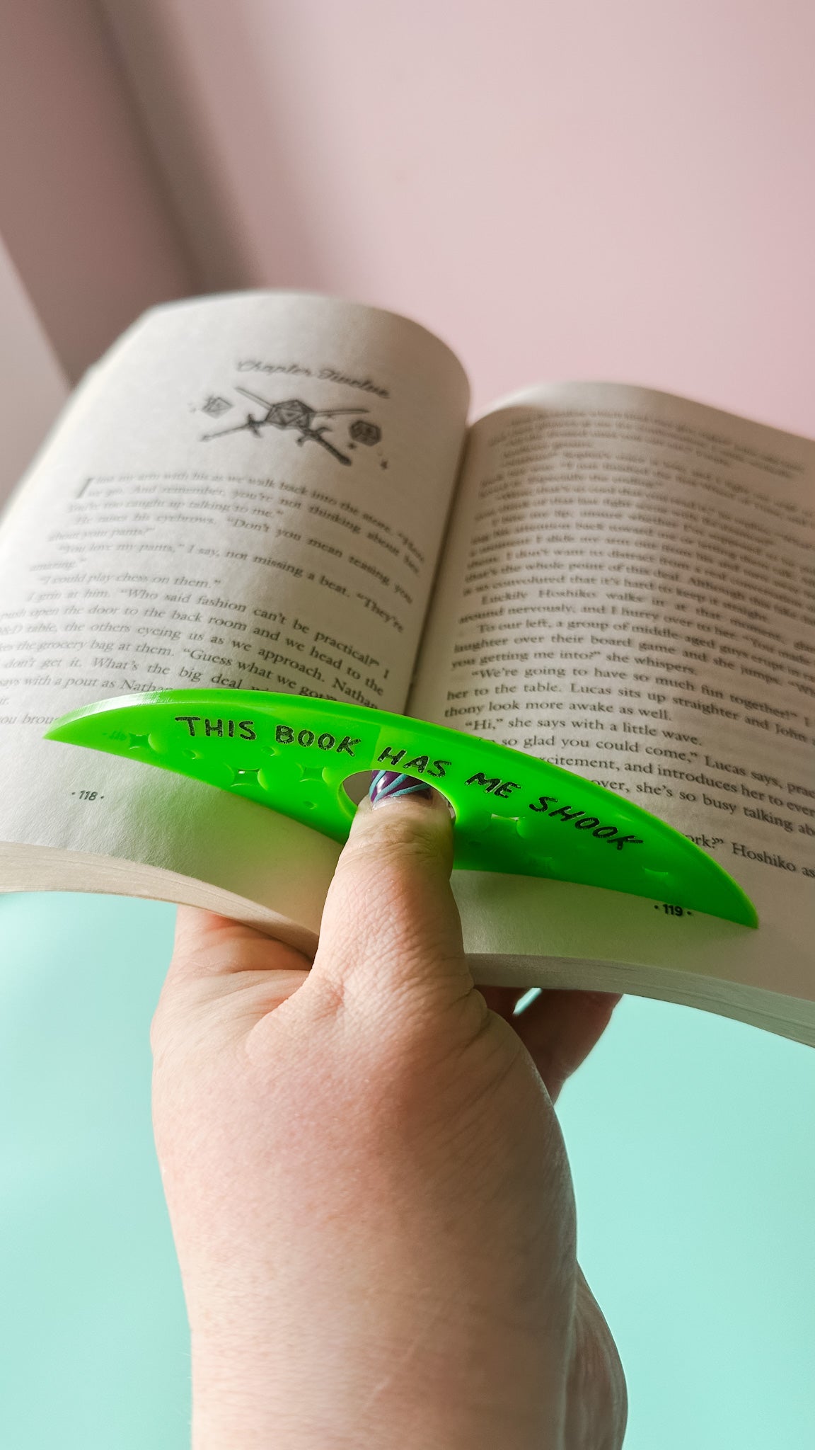For those unputdownable books that have you gasping at every plot twist, this lime green acrylic page spreader is here to help. Lightweight and comfortable, it holds your book open so you can focus on freaking out over the latest shocking moment. Whether it’s for your own reading adventures or as a gift for a fellow bookworm, this vibrant page spreader is a must-have for anyone who lives for books that leave them shook.