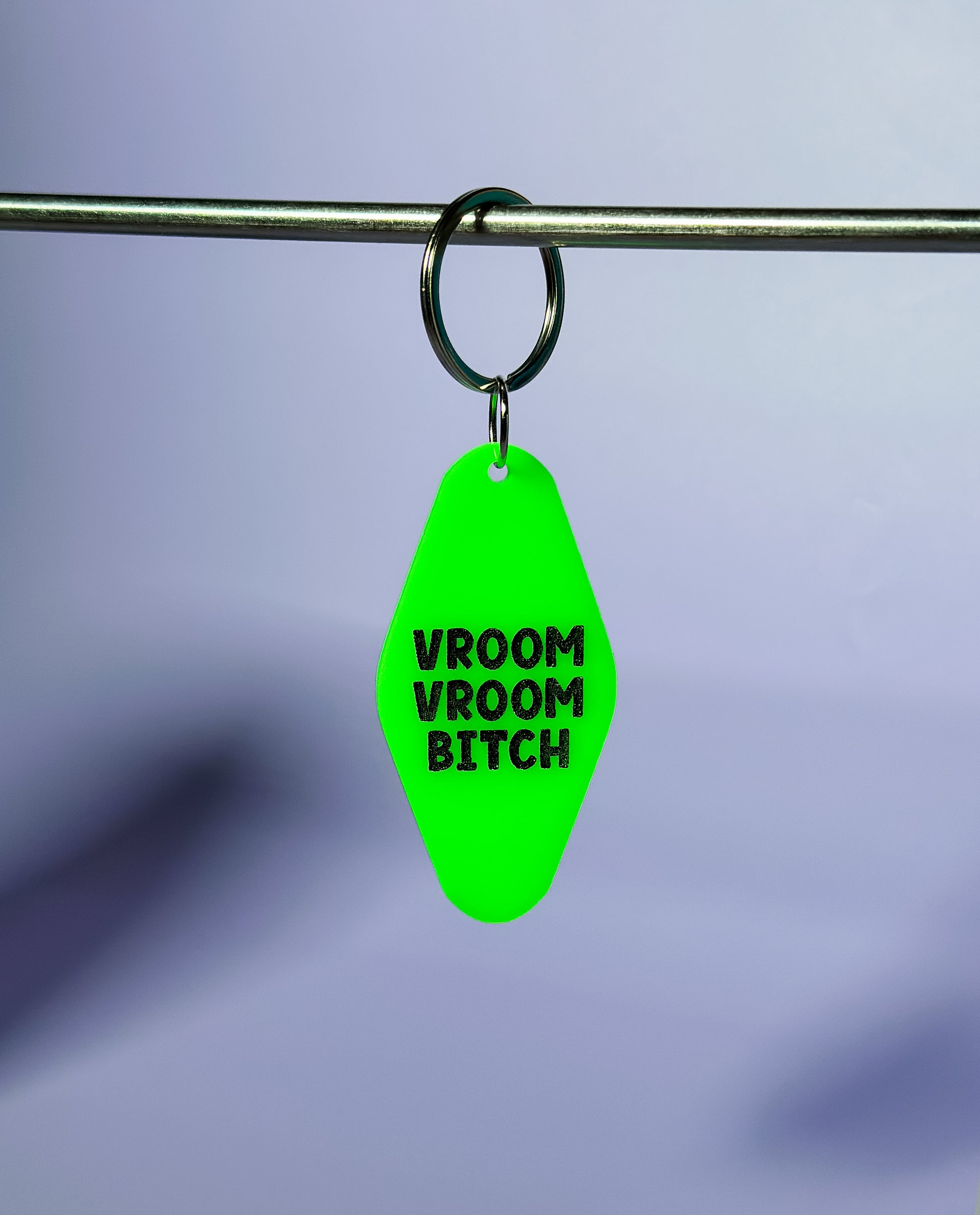 Turn heads and ignite your keys with the 'Vroom Vroom Bitch' keychain, fashioned from bold lime green acrylic. This three-inch stunner isn't just a keychain; it's an attitude. Channel your inner road warrior and show the world your fearless side!