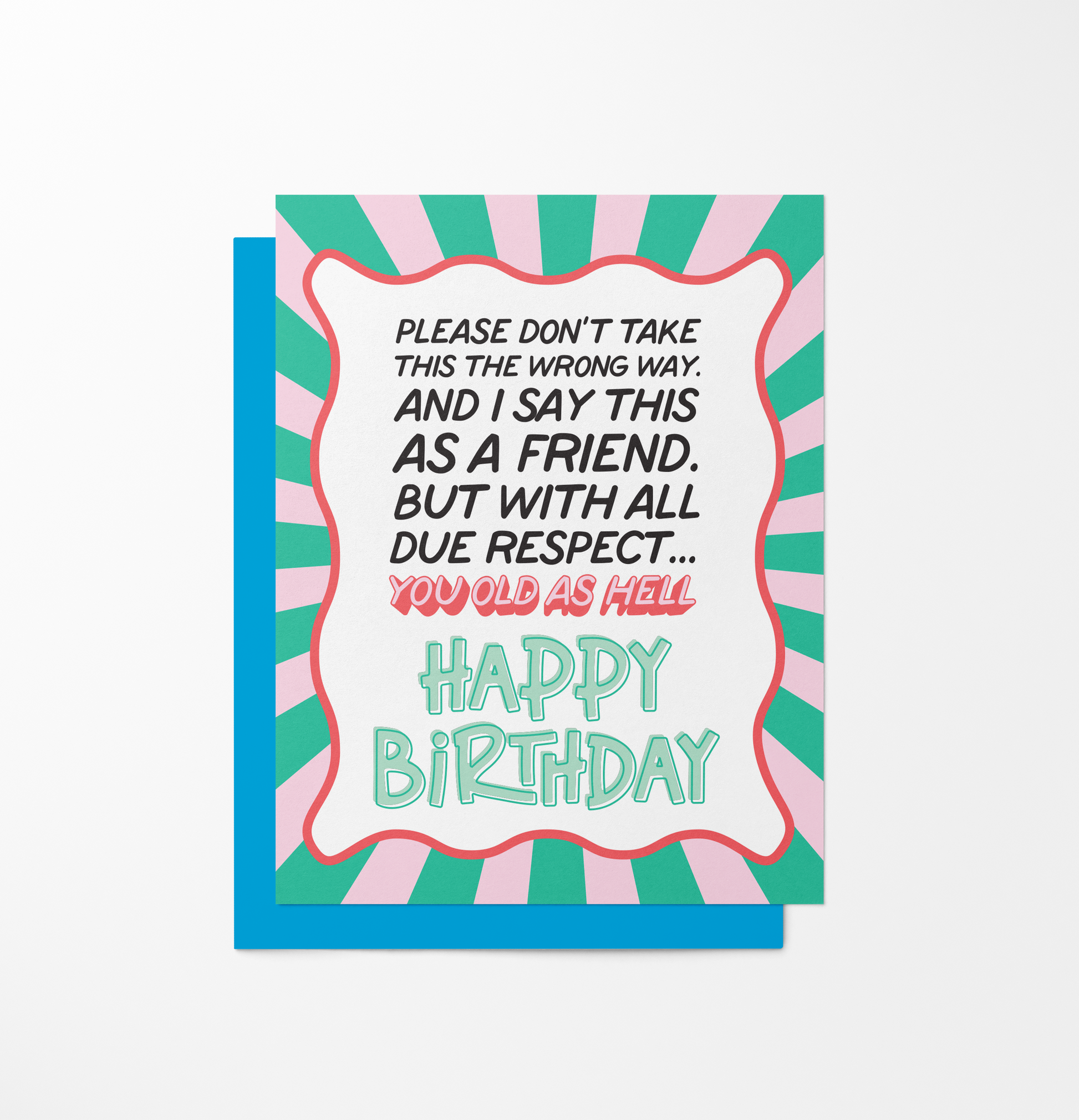 This card says what everyone else is too polite to admit. Delivered with “all due respect,” it’s the ultimate birthday roast for someone who appreciates blunt honesty and dark humor. Perfect for close friends who know love and insults can coexist.